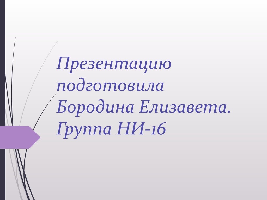 1. Презентацию подготовила Бородина Елизавета. Группа НИ-16