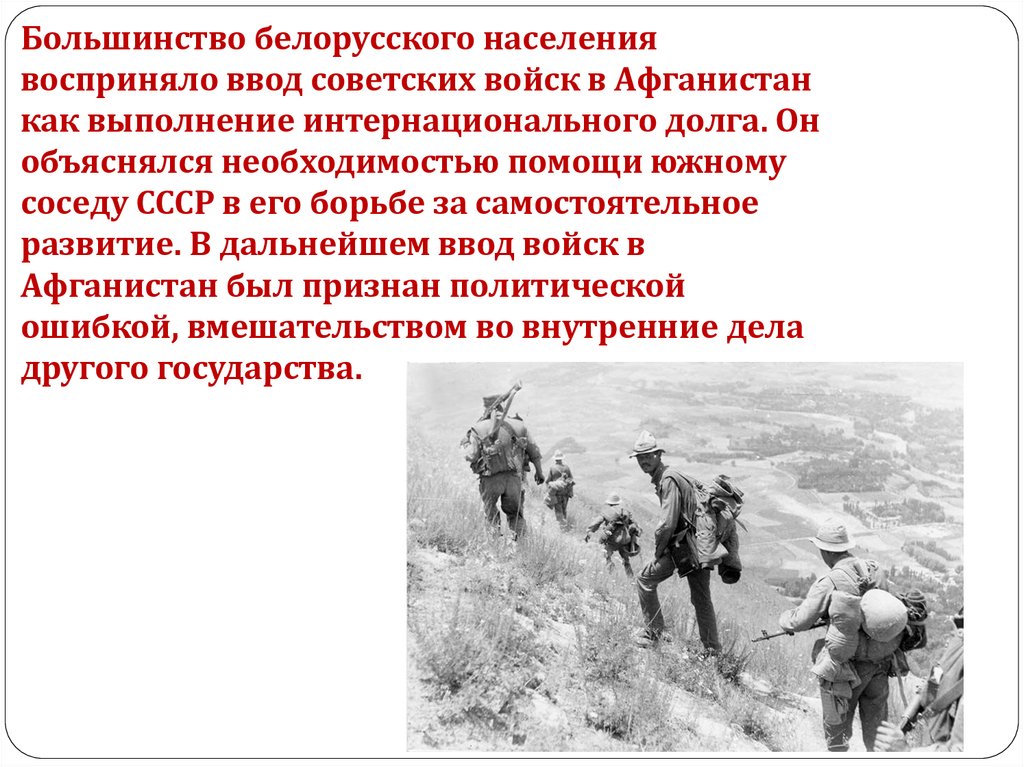 Большинство белорусского населениявосприняло ввод советских войск в Афганистан