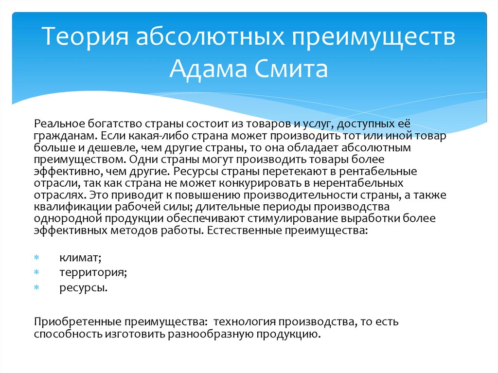 больше и дешевле, чем другие страны, то она обладает абсолютным