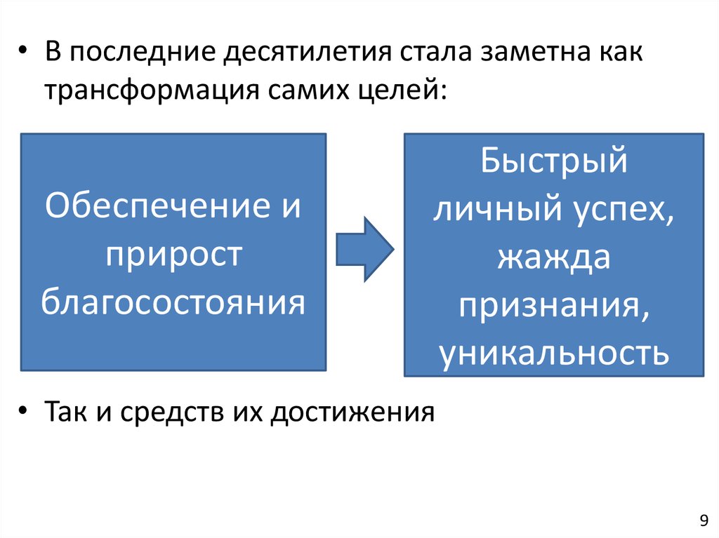 • В последние десятилетия стала заметна кактрансформация самих целей:
