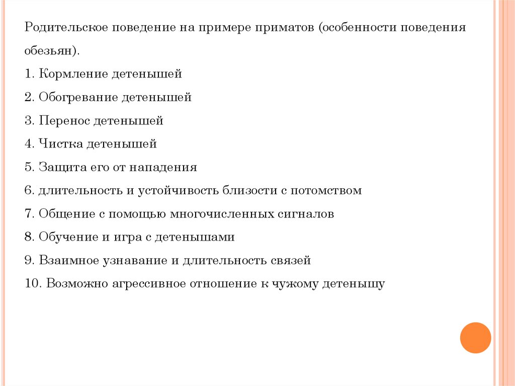 Родительское поведение на примере приматов (особенности поведенияобезьян).