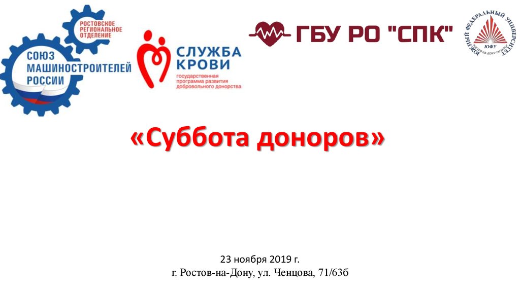 «Суббота доноров»23 ноября 2019 г.