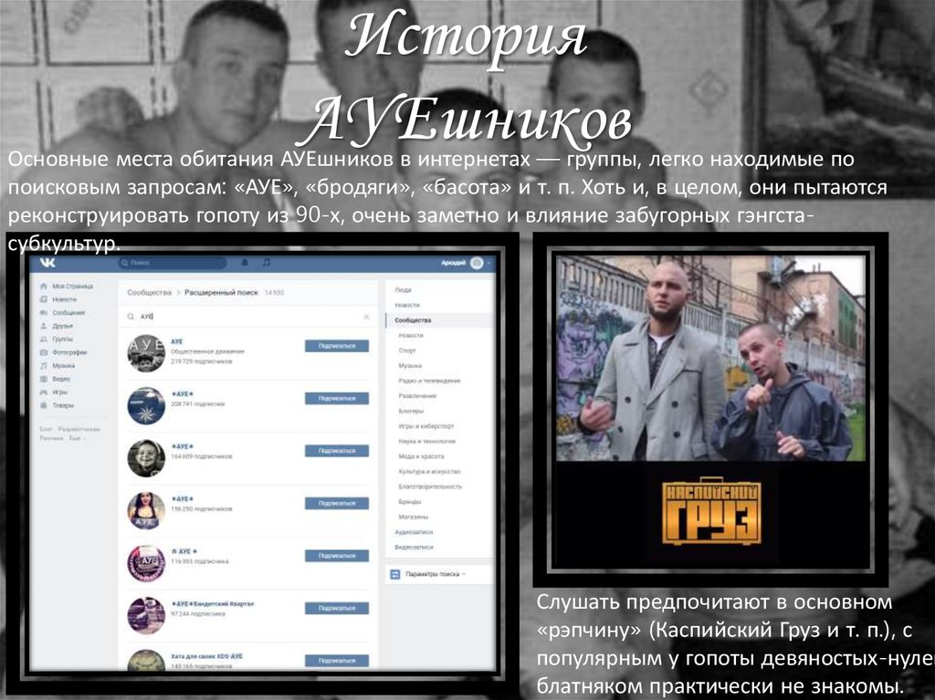 поисковым запросам: «АУЕ», «бродяги», «басота» и т. п. Хоть и, в целом, они пытаются