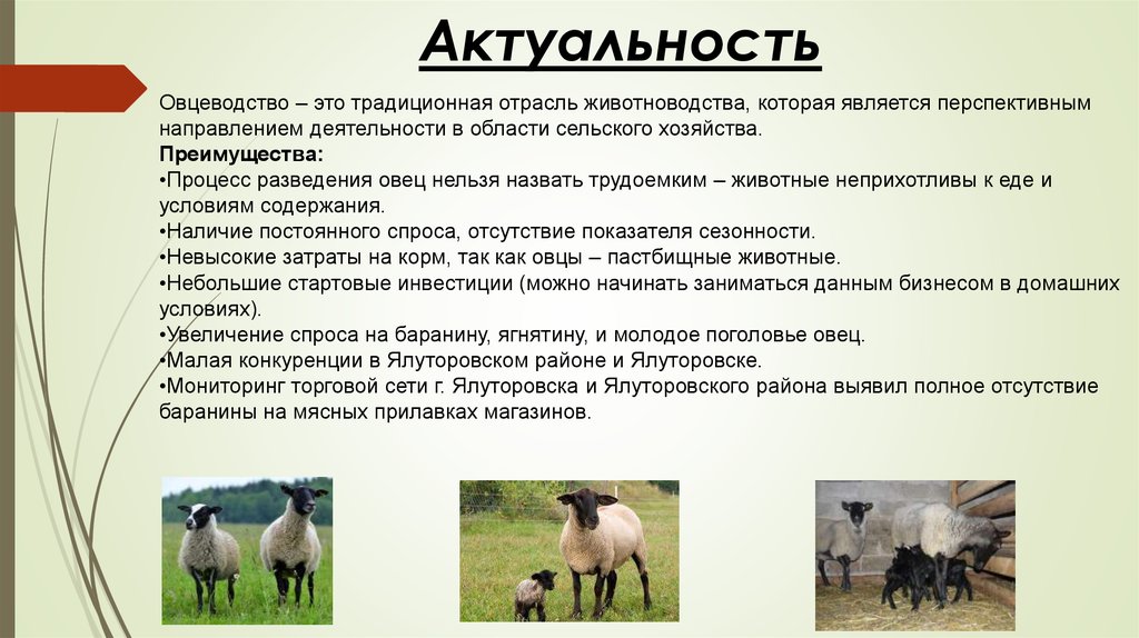 АктуальностьОвцеводство – это традиционная отрасль животноводства, которая является перспективным
