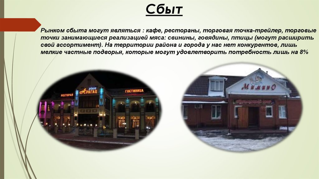 СбытРынком сбыта могут являться : кафе, рестораны, торговая точка-трейлер, торговые