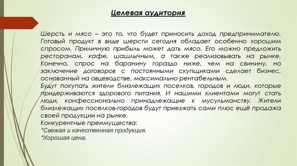 Целевая аудиторияШерсть и мясо – это то, что будет приносить доход предпринимателю.