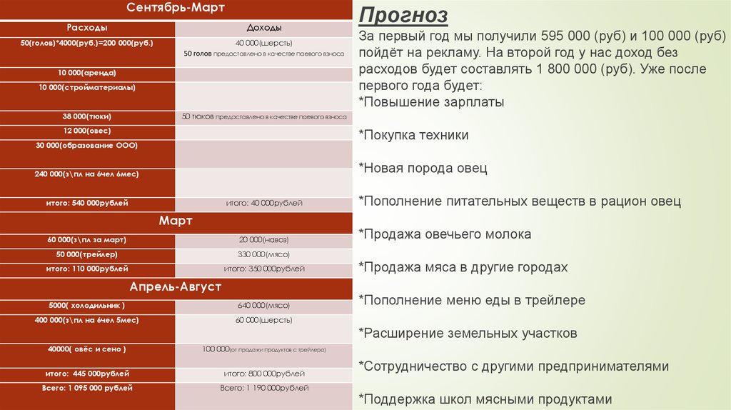 суягнутых овец, низкой арендной платы за загон и на овёс, сниженной цены на сено 50 тюков и