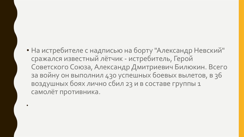 • На истребителе с надписью на борту "Александр Невский"сражался известный лётчик - истребитель, Герой