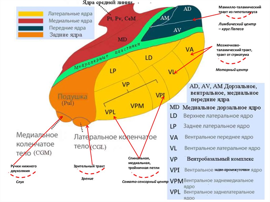 мамилло-таламического (от гипоталамуса), начиная с рецепторов до