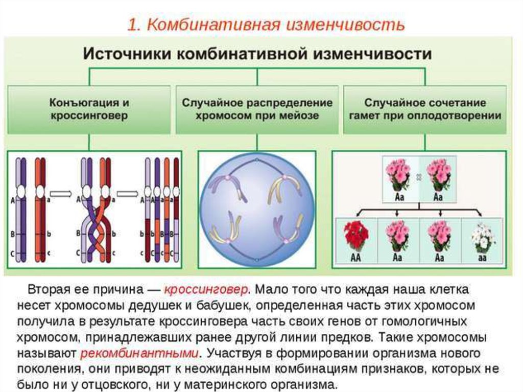 Закономерности изменчивости. Типы наследственной изменчивости. Комбинативная изменчивость