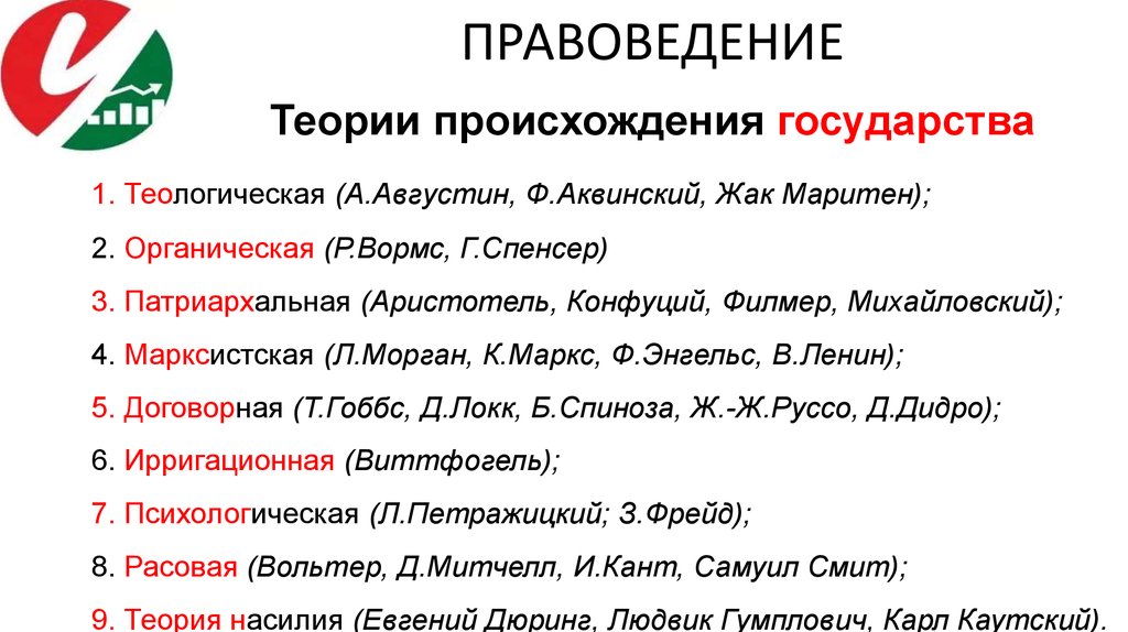 - теорию государства (государствоведение)