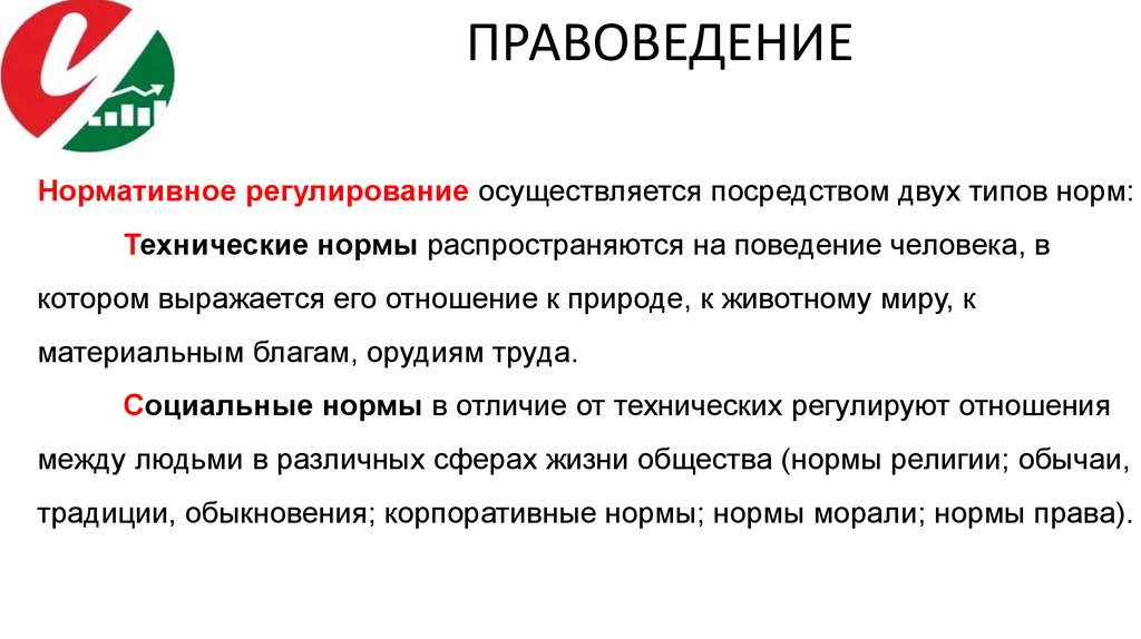 ПРАВОВЕДЕНИЕНормативное регулирование осуществляется посредством двух типов норм: