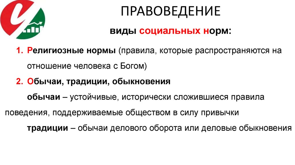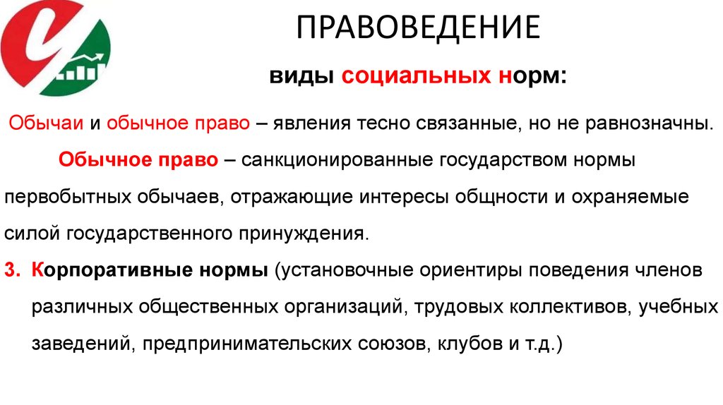 ПРАВОВЕДЕНИЕвиды социальных норм: