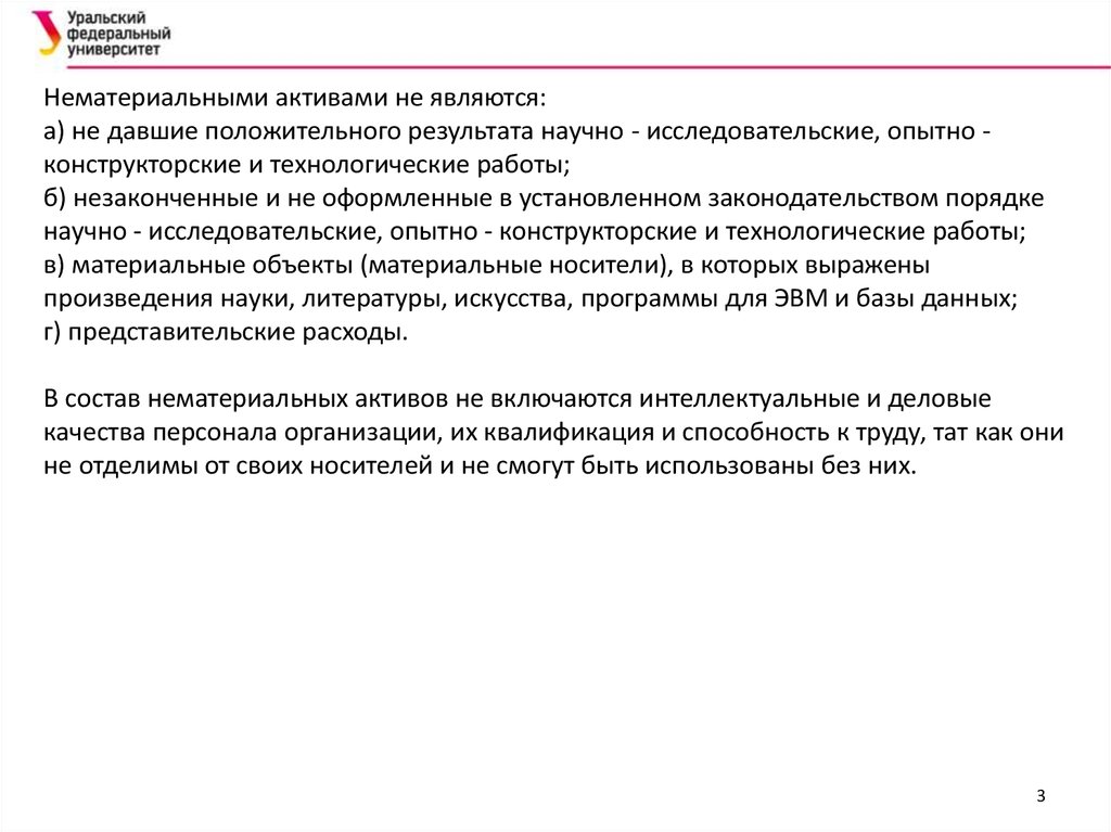 В состав нематериальных активов не включаются интеллектуальные и деловые