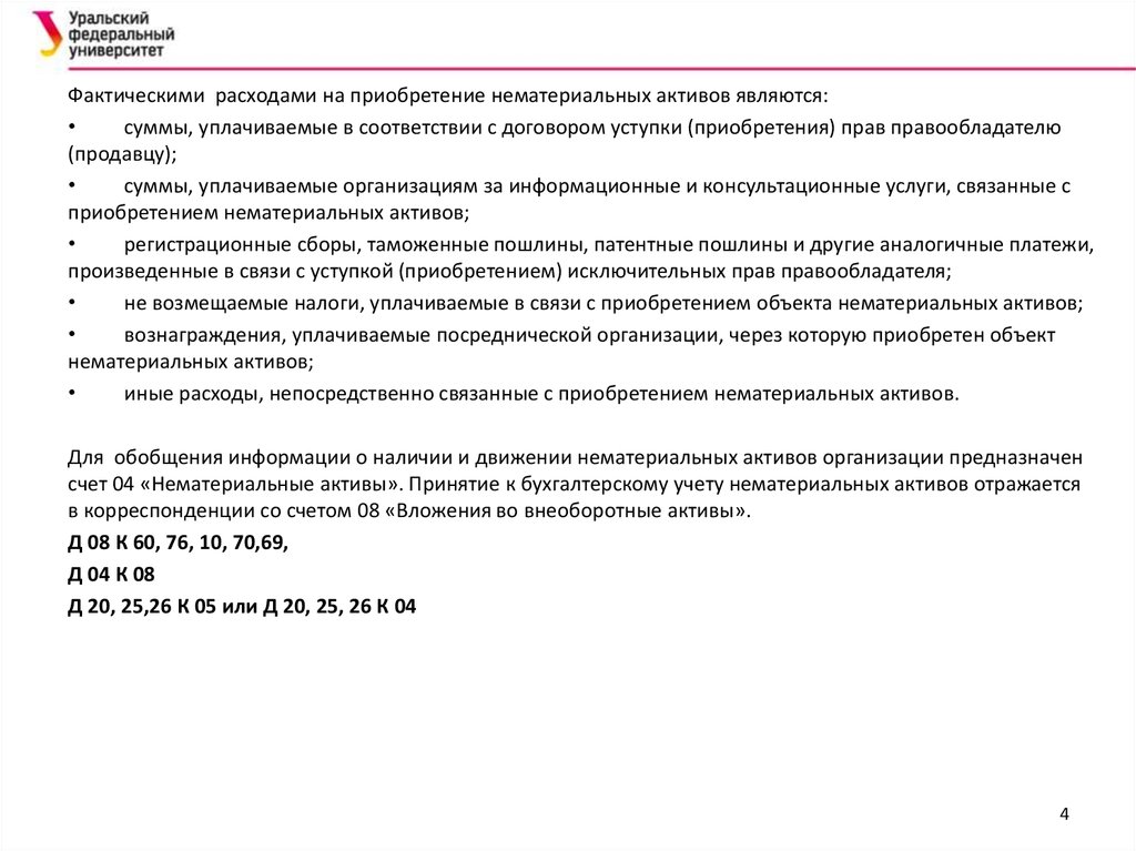 счет 04 «Нематериальные активы». Принятие к бухгалтерскому учету нематериальных активов отражается