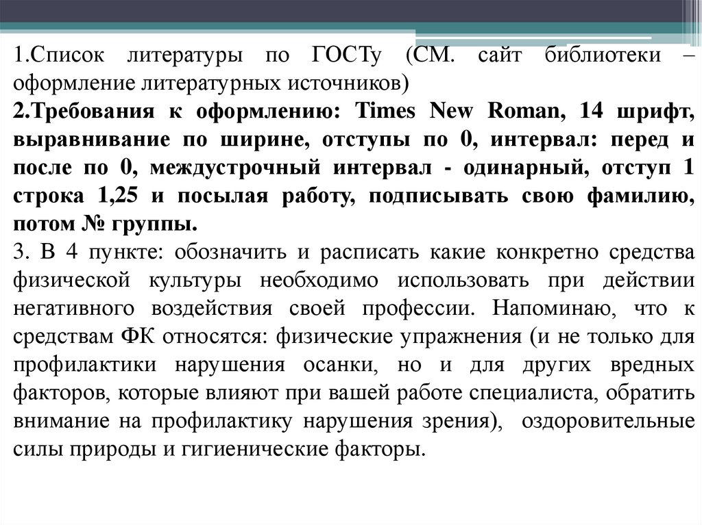 1.Список литературы по ГОСТу (CМ. сайт библиотеки –оформление литературных источников)