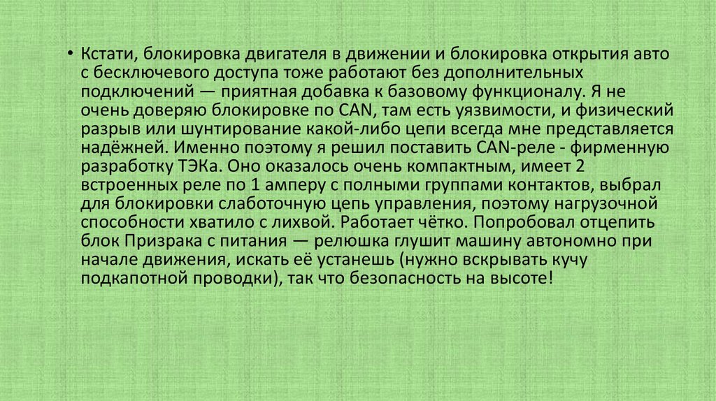 очень доверяю блокировке по CAN, там есть уязвимости, и физический