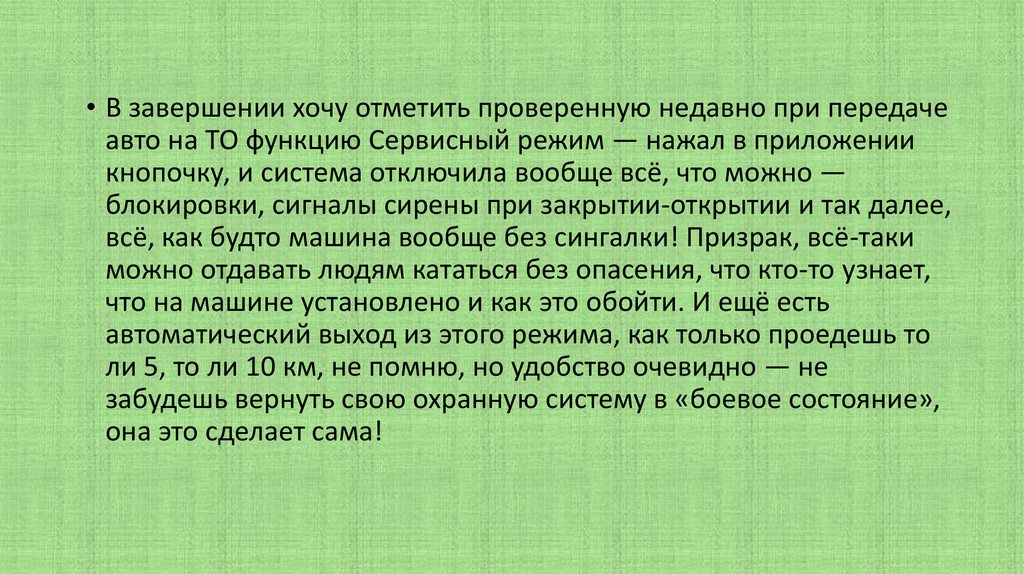 • В завершении хочу отметить проверенную недавно при передачеавто на ТО функцию Сервисный режим — нажал в приложении