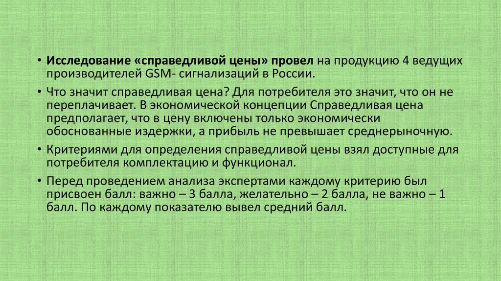 • Исследование «справедливой цены» провел на продукцию 4 ведущихпроизводителей GSM- сигнализаций в России.