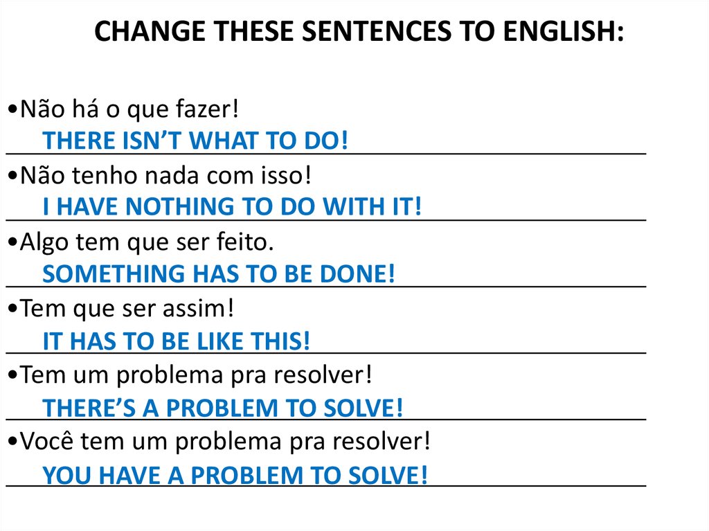 CHANGE THESE SENTENCES TO ENGLISH:•Não há o que fazer!