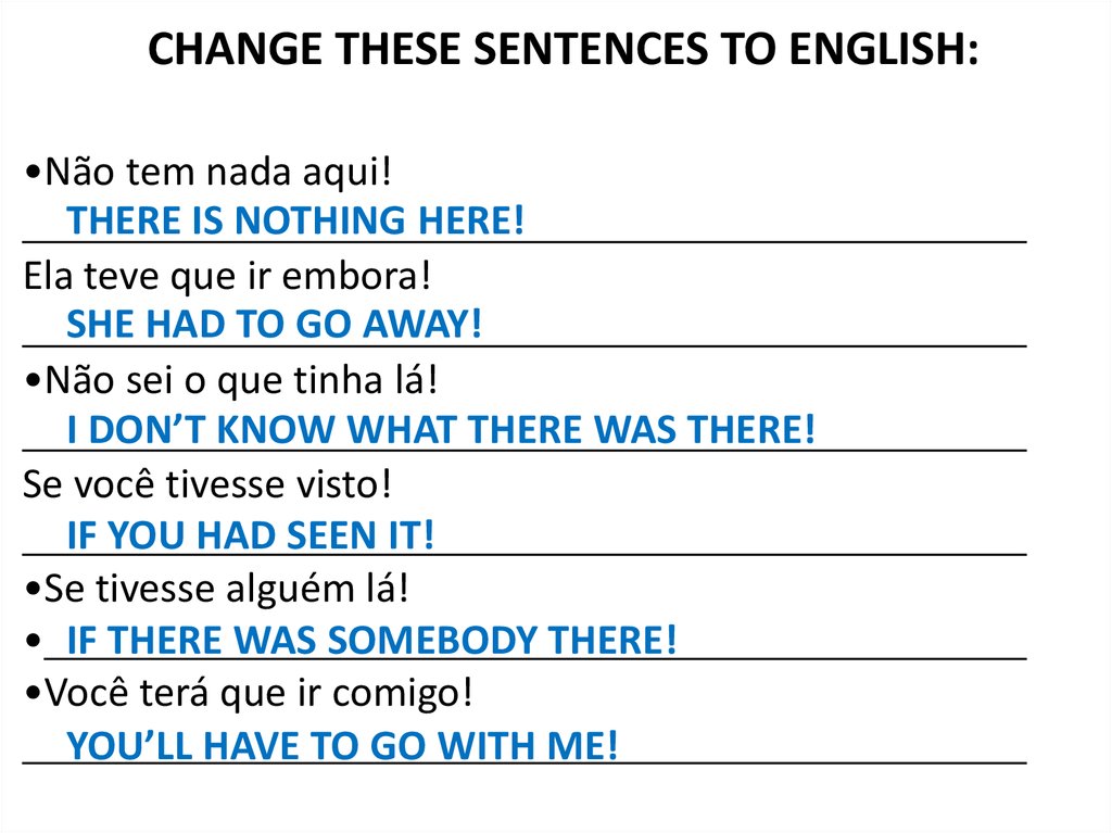 CHANGE THESE SENTENCES TO ENGLISH:•Não tem nada aqui!