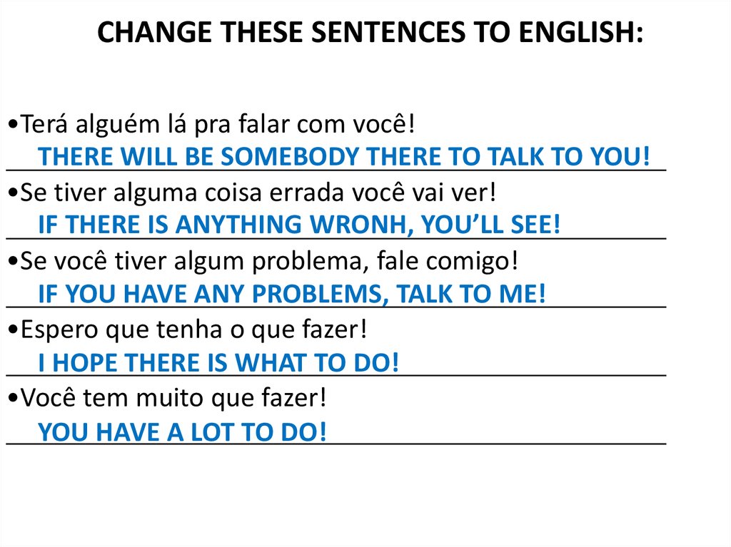 CHANGE THESE SENTENCES TO ENGLISH:•Terá alguém lá pra falar com você!