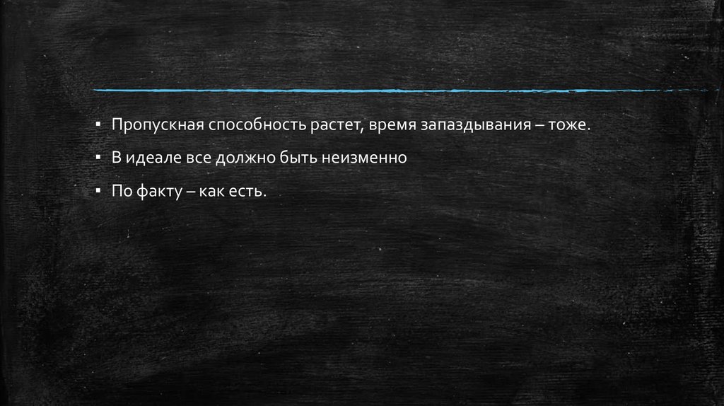▪ Пропускная способность растет, время запаздывания – тоже.▪ В идеале все должно быть неизменно