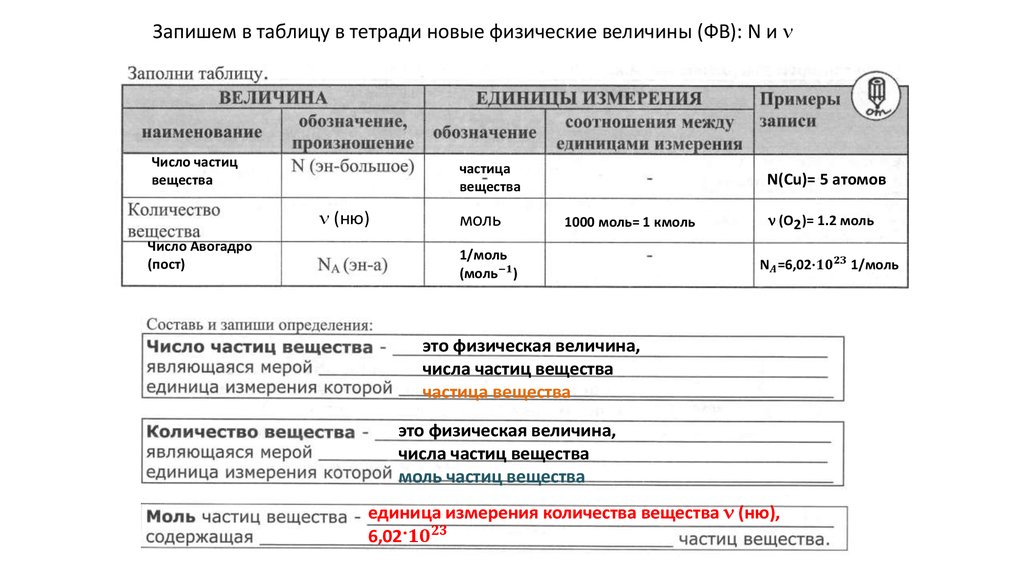 Физические величины для подсчета числа частиц вещества