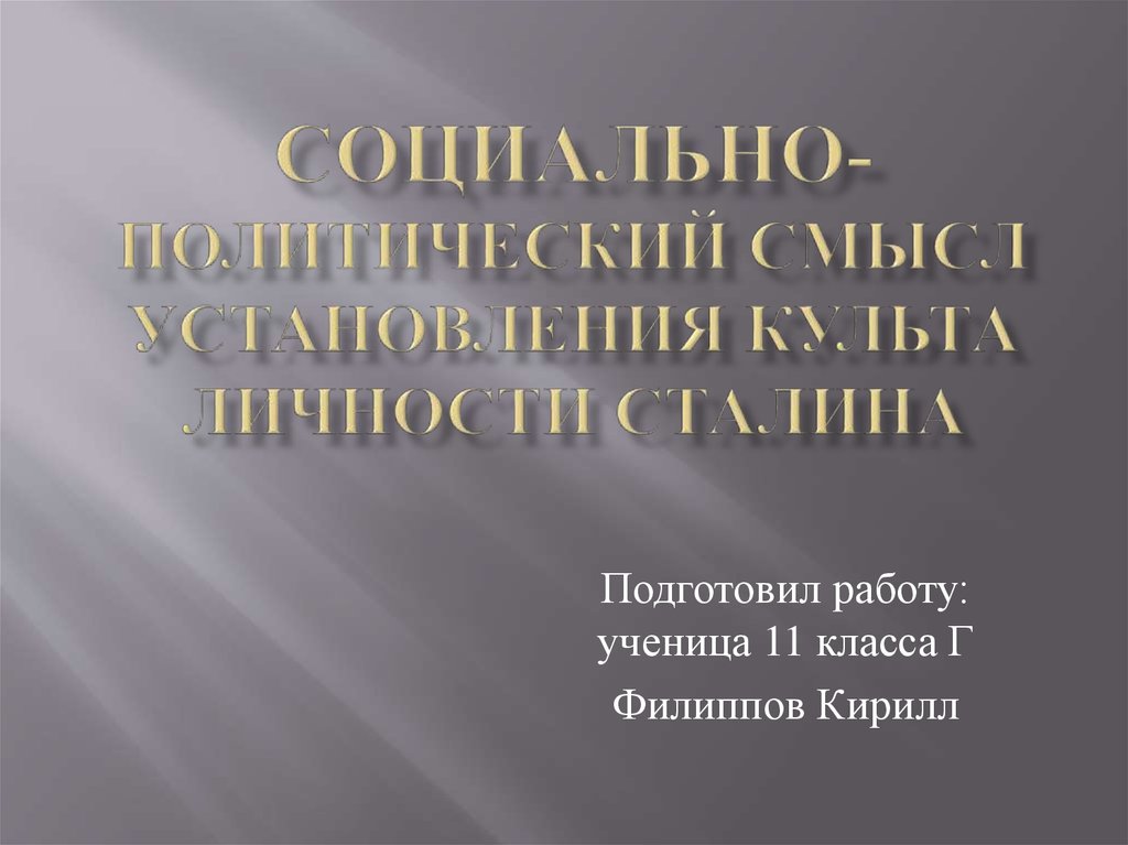 Культ личности Сталина — возвеличиваниеличности И. В. Сталина средствами массовой