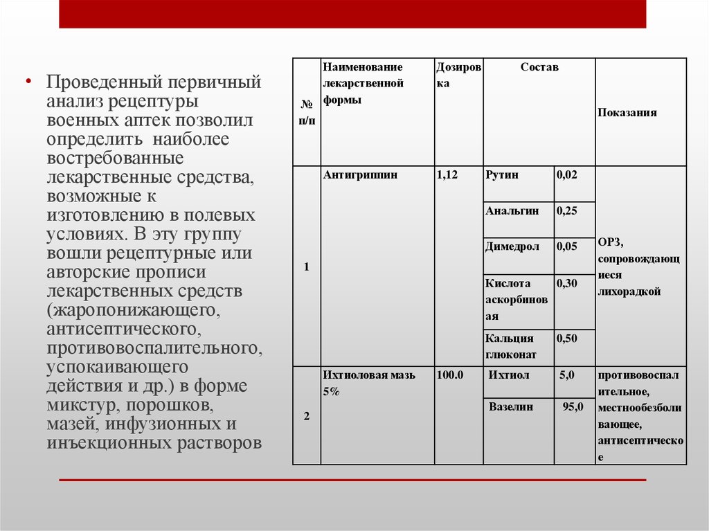 2. Цель работы: Определение направлений по совершенствованию производственной деятельности военных аптек в полевых условиях.