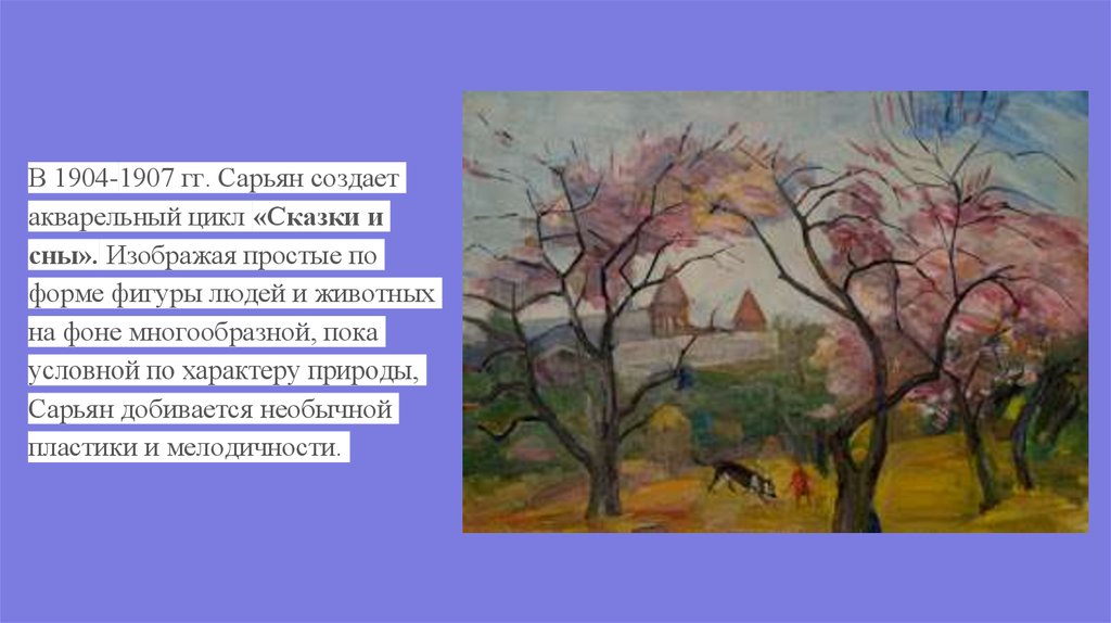 В 1904-1907 гг. Сарьян создаетакварельный цикл «Сказки и