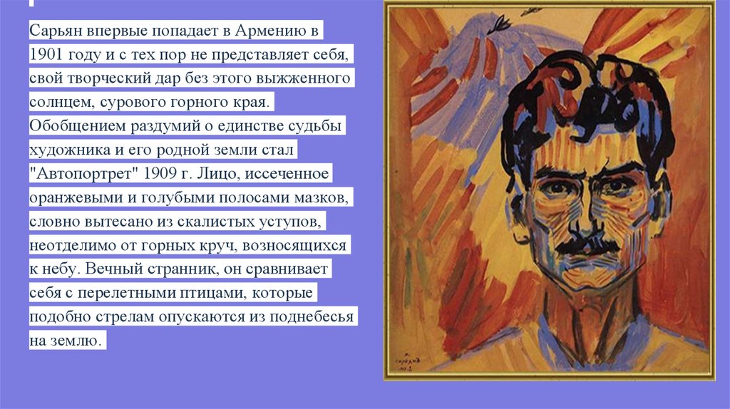 Полотна Сарьяна, написанные яркими, насыщенными красками, развивают новое эстетическое