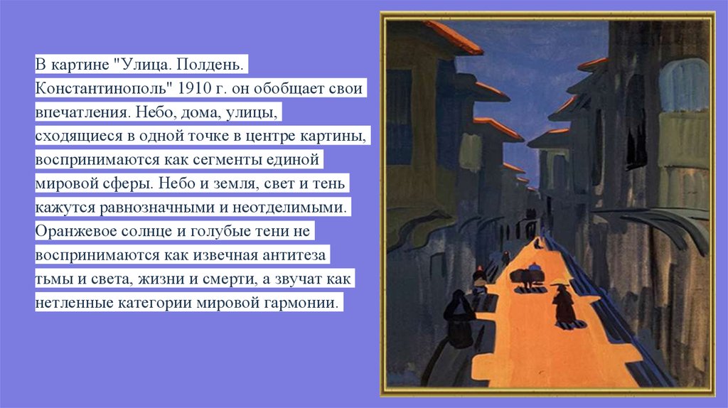 В картине "Улица. Полдень.Константинополь" 1910 г. он обобщает свои