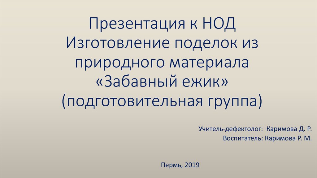 1. Презентация к НОД Изготовление поделок из природного материала «Забавный ежик» (подготовительная группа)