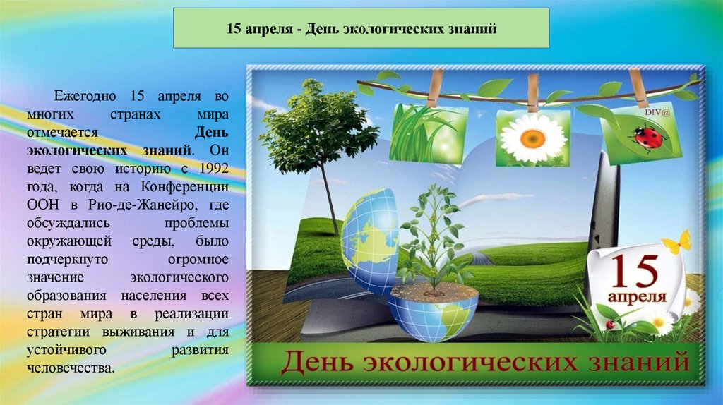 15 апреля - День экологических знанийЕжегодно 15 апреля во