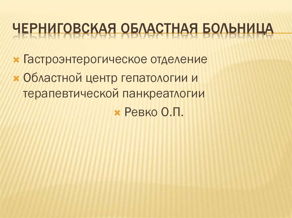 ЧЕРНИГОВСКАЯ ОБЛАСТНАЯ БОЛЬНИЦАГастроэнтерогическое отделение