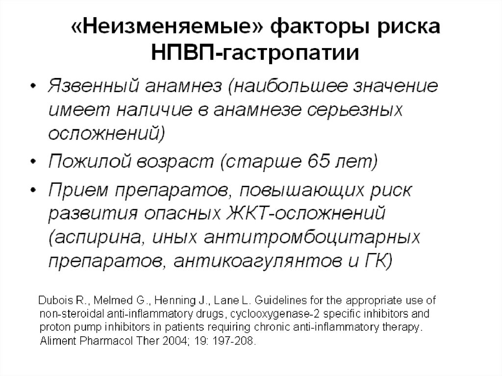 НПВС поражения слизистой оболочкигастродуоденальной зоны