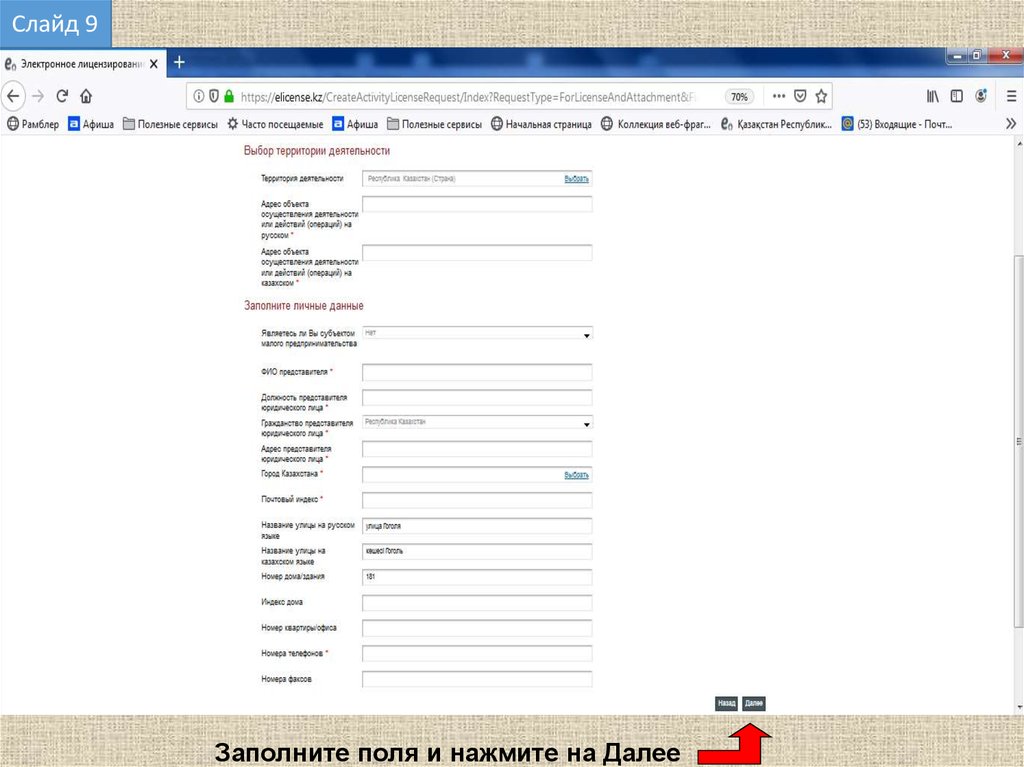 Слайд 13Заполните данные об оплате и нажмите на Далее