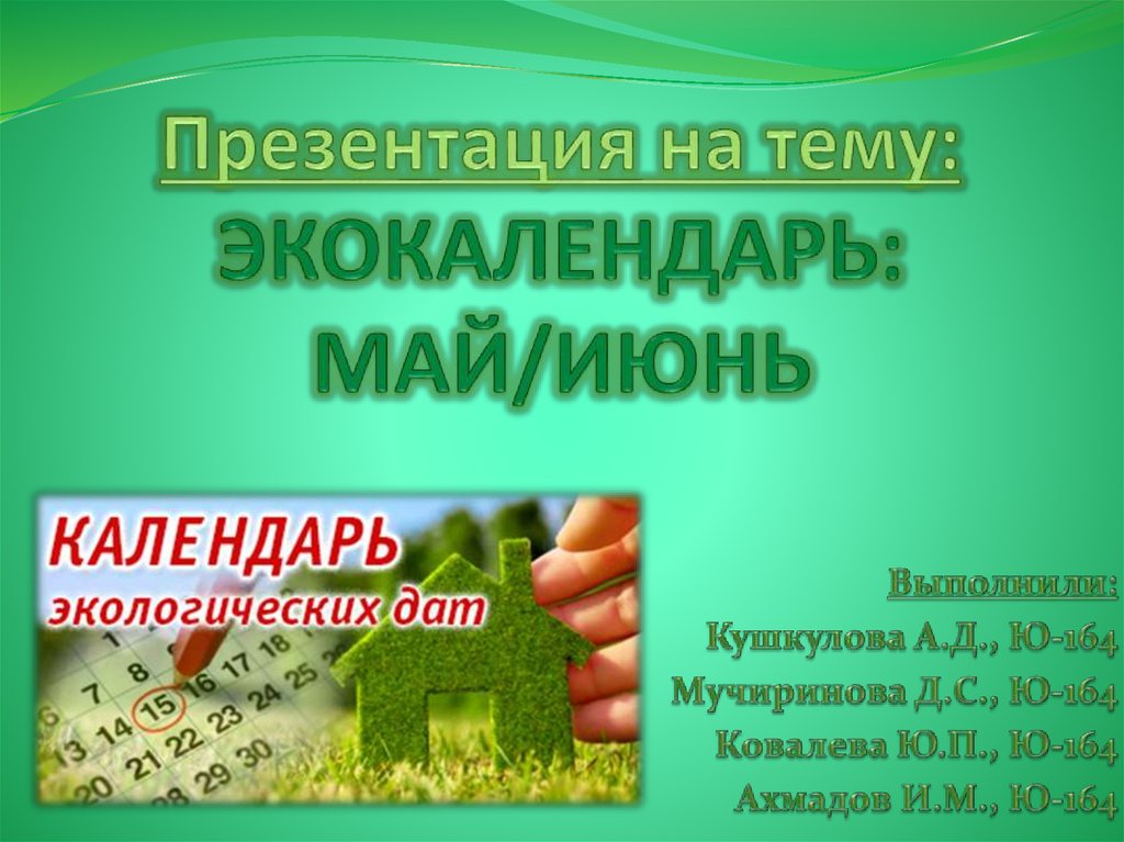 1. Презентация на тему: ЭКОКАЛЕНДАРЬ: МАЙ/ИЮНЬ