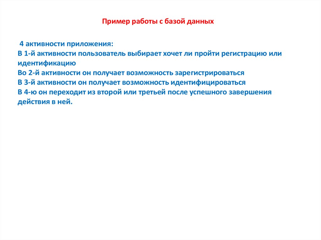 Пример работы с базой данных4 активности приложения: