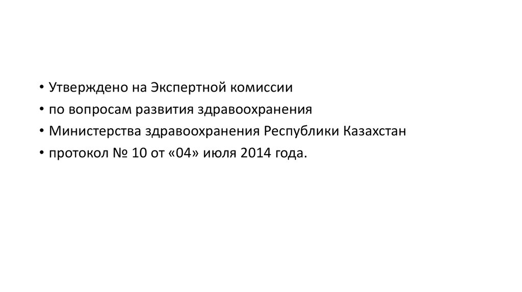 • Утверждено на Экспертной комиссии• по вопросам развития здравоохранения