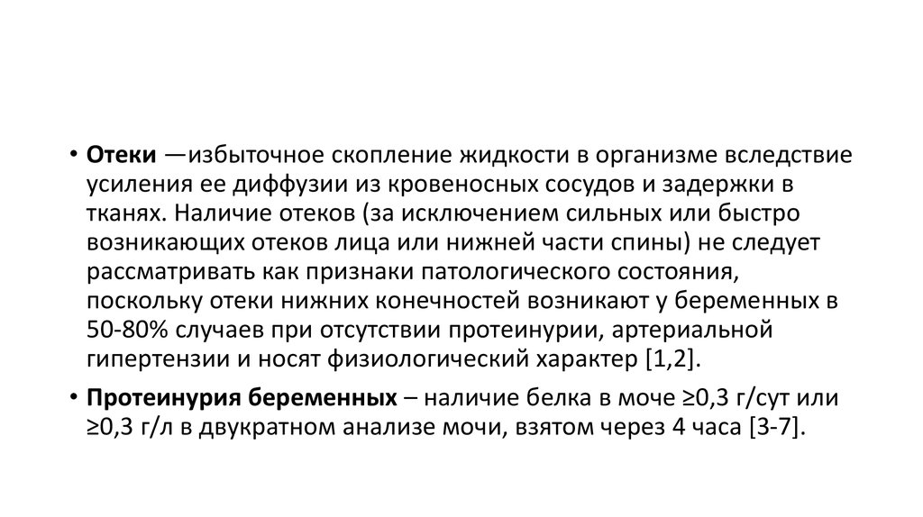 • Протеинурия беременных – наличие белка в моче ≥0,3 г/сут или