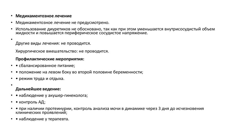 • отсутствие присоединения гипертензивных нарушений;