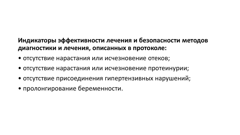 Индикаторы эффективности лечения и безопасности методовдиагностики и лечения, описанных в протоколе:
