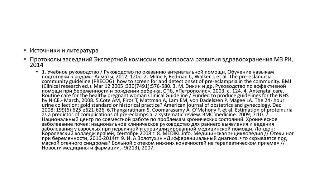 • Источники и литература• Протоколы заседаний Экспертной комиссии по вопросам развития здравоохранения МЗ РК,