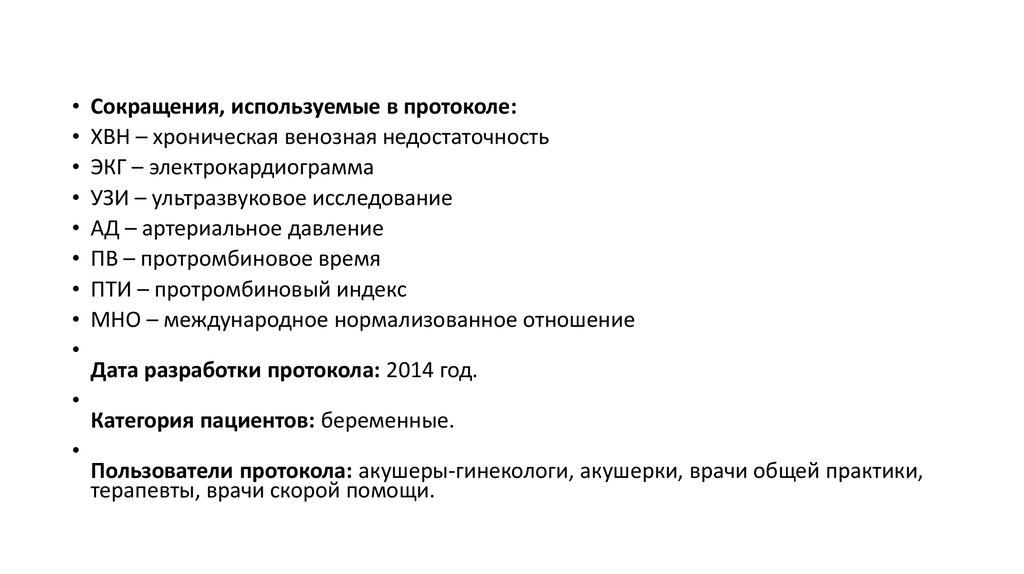 Пользователи протокола: акушеры-гинекологи, акушерки, врачи общей практики,