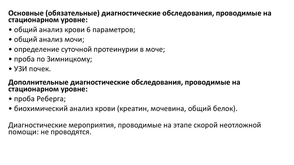 Основные (обязательные) диагностические обследования, проводимые настационарном уровне: