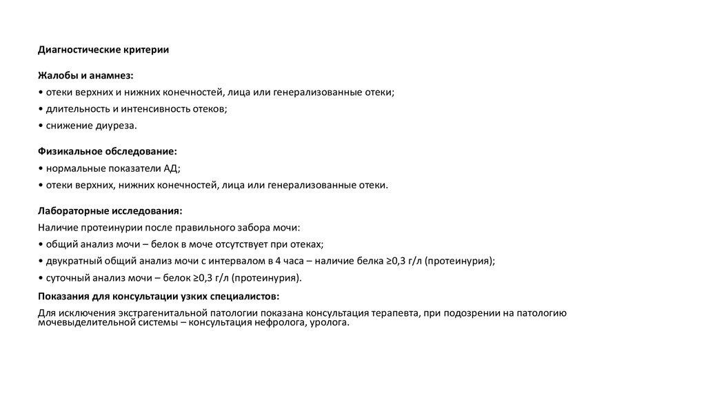 • • для проведения дифдиагностики при генерализованных отеках на уровне стационара.