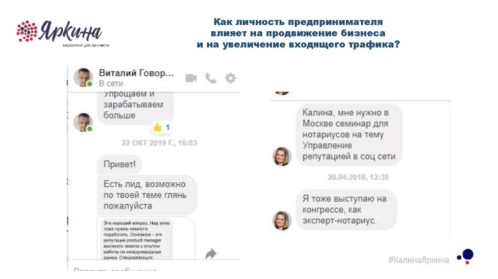 Личный брендинг и маркетинг персоныКалина ЯркинаТЕКСТ Специалист по маркетингу персон