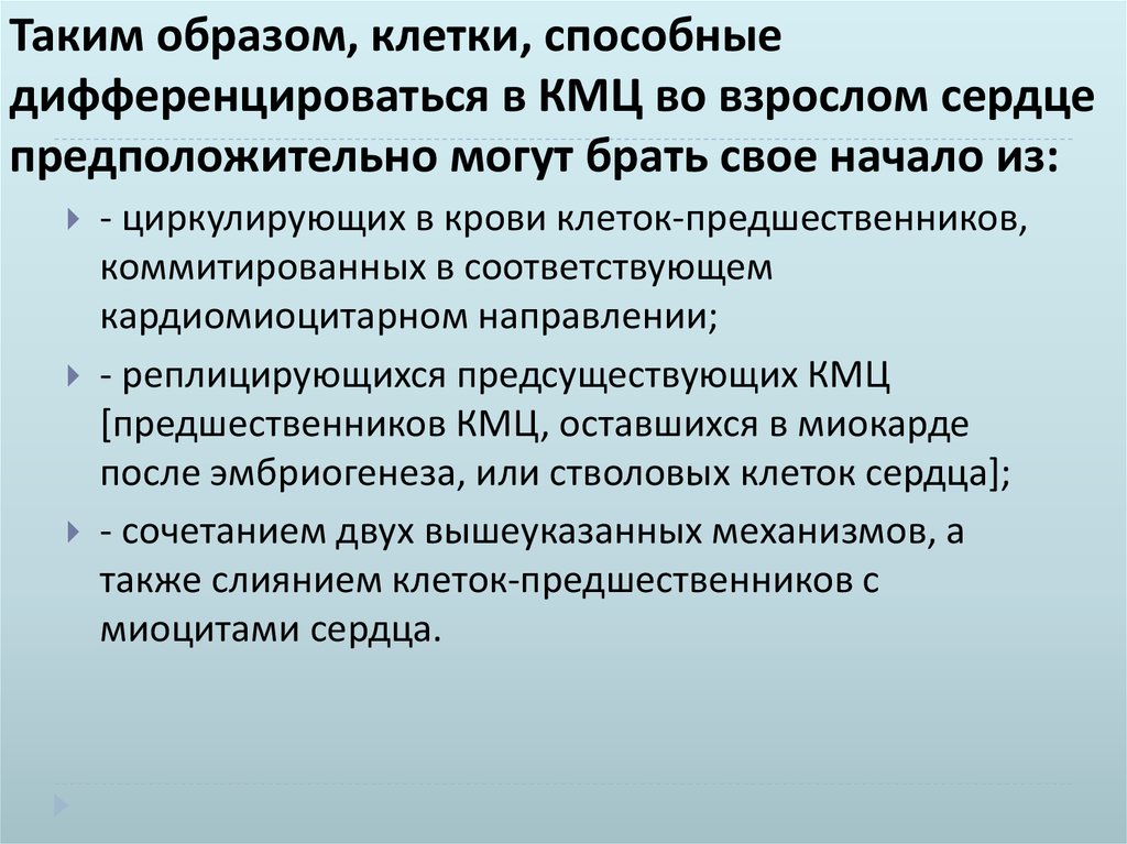 Таким образом, клетки, способныедифференцироваться в КМЦ во взрослом сердце